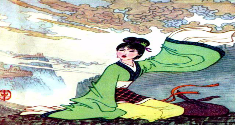相傳嘉山腳下有一姜姓老者,生有一女,取名孟姜。孟姜成人后,一日在屋后小池塘里洗澡,被逃長城役而路過此地的范喜郎偷窺。兩人一見傾心,私訂終身。不想新婚燕爾,范喜郎還是被官府抓走,押送邊關(guān)修筑長城。由于不堪重勞,范喜郎很快死去,并被填埋在長城之下。孟姜在家天天望夫歸來。過數(shù)年,孟姜決心親往長城尋覓,哭倒長城,獲夫骸骨,背負(fù)還鄉(xiāng),死于返鄉(xiāng)途中。鄉(xiāng)人感其事跡,修廟供奉不絕。