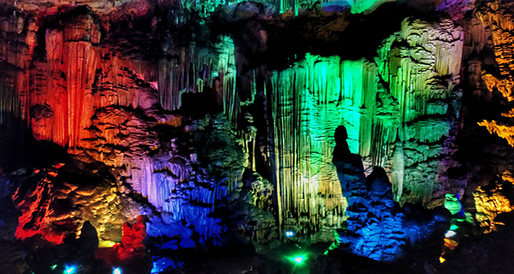 一個巨大的喀斯特溶洞,位于湖心島上。洞內(nèi)空間開闊,鐘乳石形態(tài)各異,在五彩燈光的映襯下,呈現(xiàn)出光怪陸離的景象,仿佛進(jìn)入了一個神秘的地下世界。洞內(nèi)還有地下河,河水清澈見底。需乘船抵達(dá)島上,游覽時間約 1 小時,參觀時需跟隨導(dǎo)游,注意安全。