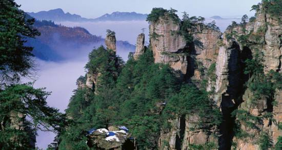 有人曾這樣評(píng)價(jià)黃石寨:五步稱奇,七步叫絕;十步之外,目瞪口呆。黃石寨這里的每一座巖蜂都是一件古老的藝術(shù)品,它們?nèi)鐒?、如針、如龍首、如龜頭、如現(xiàn)代化都市的摩天大廈……1992年5月,兩位聯(lián)合國(guó)世界遺產(chǎn)委員會(huì)派來的藍(lán)眼睛官員面對(duì)黃石寨的磅砣氣勢(shì)哦哦連聲,嘆為觀止。