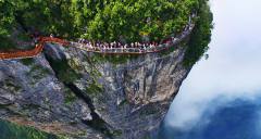棧道全長1600米,平均海拔為1400米,起點是倚虹關,終點到小天門。與其他棧道不同的是,鬼谷棧道全線既不在懸崖之巔,也不在懸崖之側,而是全線都立于萬丈懸崖的中間,給人以與懸崖共起伏同屈伸的感覺。 站在棧道上俯瞰群山,古人“會當凌絕頂,一覽眾山小”的感覺油然而生。由于天門山是國家森林公園,植被特別豐富,加上典型的喀斯特地貌,所以,在這條棧道上更能找到一種在乘坐直升飛機飛越熱帶雨林大峽谷的感覺,這平時只能在電影里看到的場景,在這里能讓你身臨其境。 由于海拔和氣流的影響,很多小鳥都不能到達與棧道平行位置。所以,站在這里,腳下是沒有邊際的綠野,成群的小鳥在峽谷中嬉戲,偶爾有老鷹從眼前掠過,閉上眼,挺著發(fā)麻的雙腿,帶著急促的心跳,伸開雙臂,你就能得到一次最完美、最刺激、最貼近自然的SPA。因為,要知道這種在懸崖上賞風景一般都是非人類所能享受的。 如果是雨前雨后,在棧道上則是身邊霧氣盤繞,腳下云海翻騰,令人抬腿似生霧,邁步如踏云,人間天界,世外洞天也就是如此了。 據(jù)施工人員介紹,此條棧道也是他們所修棧道中施工最難,最險峻的一條。如果您還覺得不夠刺激的話,在棧道的完結處的兩個懸崖之間有一條長160米的懸索吊橋,同時,在海拔最高點還有一個挑戰(zhàn)心里極限的玻璃站臺,在這里,如果你能挺直腰板伸開雙臂,那么,您就是真正的勇士了。