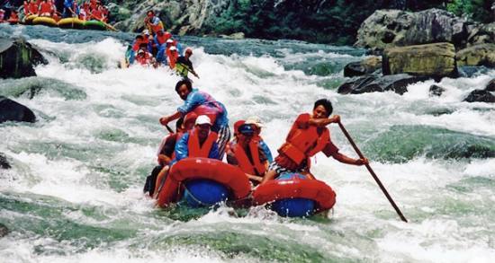 被譽為“中國生態(tài)第一漂”,位于東江湖最南端的黃草鎮(zhèn)境內,全程26千米。從龍王廟起漂點到燕子排終漂點整個落差75米,急灘108個,漂流河道兩巖有保存比較完好的原始次森林,奇巖怪石林立,古樹遮天蔽日,老藤攀崖附壁,飛鳥跳躍枝頭。東江漂流以其灘多浪急落差大、水碧石怪魚奇怪、兩岸森林植被佳而 聞名,是國內目前最具探險的融歷險、探幽、獵奇、拾趣為一體的漂流去處。