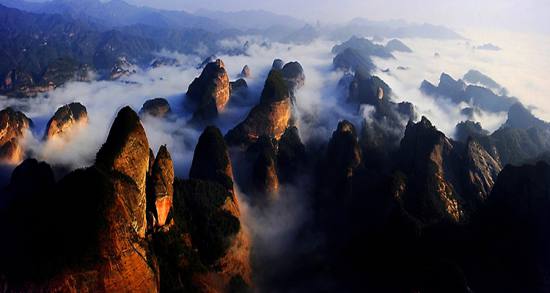 丹霞地貌屬于紅層地貌,所謂“紅層”是指在中生代侏羅紀(jì)至新生代第三紀(jì)沉積形成的紅色巖系,一般稱為“紅色砂礫巖”。世界上丹霞地貌主要分布在中國、美國西部、中歐和澳大利亞等地,以我國分布最廣,又尤以崀山為中國丹霞地貌峰景區(qū)中豐度和品位代表性和最優(yōu)美的景區(qū),以完整的紅盆丹霞地貌計,居全國第一,是一座天然的丹霞地貌博物館,被地質(zhì)專家們譽為“丹霞之魂、國之瑰寶”。