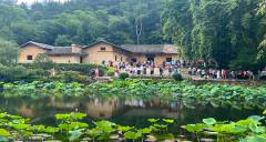 滴水洞長約2.8公里,洞內有小溪,曲曲彎彎,幽壑口朝東北而開。小溪沿岸林木繁茂,挺拔的松林中夾雜著茂密的楠竹,而上百種野花漫山遍野地生長著。這里的珍貴林木有銀杏、女貞、鐵樹等30多種,這里的花卉有映山紅、臘梅、芙蓉、月季、菊花等上百種,這里的珍貴藥材有金銀花、甘草、沉香、白果等20余種,境幽景優(yōu)是滴水洞幽壑的一大特點,人在景中如置身仙境。滴水洞正式對外開放,并陸續(xù)修造了許多旅游景點與設施。滴水洞門樓,依山造勢,頂部垂著深灰色的石鐘乳,中覆著紫藤、絡石、烏蘿,古趣盎然,上題“滴水洞天”4個朱紅大字。門樓建在水濱崖邊,韶山水庫波光粼粼,巖邊松柏勁拔,給游人以先聲奪人之感;加上守衛(wèi)者仍保留全副武裝,仿佛毛澤東仍在洞中安歇。進得門樓,臨水一亭翼然,倚欄俯仰,只見山風拂面;又見游道右側山巖石壁上,倏然從松樹間躍出靈氣飛動的“滴水洞”3字,正是毛澤東的手跡。道邊的黑色山體上,嵌著一塊塊名人留言的青石碑。漫步滴水洞游道,仿如置身詩情畫意中,松與竹,青蔥得癢人心肺,山花、野鳥、人面、歌聲,使人陶醉。