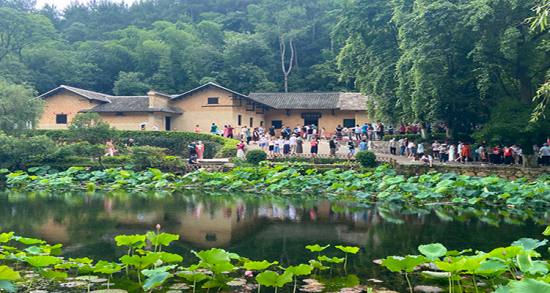 滴水洞在毛澤東故居以西約4公里處,是一個三面環(huán)山,一面以一小山澗作為出口的狹窄谷地,長約兩三公里,寬約05公里。由于谷深青幽,猶似一洞,山上一泉水從巖石滴下,故稱“滴水洞”,俗稱“吊水洞”。這里竹木繁茂,山澗流水潺潺,四季鳥語花香。特別是盛夏,這里氣溫比谷外低了3—5℃,是避暑療養(yǎng)的好處所。這里原為毛澤東祖父的居住地,山洞西北的一個山嘴,傳說過去常有老虎在此歇息,故曰“虎歇坪”,現有兩只臥虎石雕。