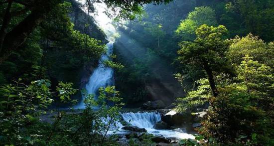 神農(nóng)谷國家森林公園內(nèi)森林茂密,小氣候環(huán)境優(yōu)越、空氣清新、負離子含量高,更能促進人體身心健康。澗深谷幽,一巨石雄踞路頭,繞石而進,豁然開朗,瀑布自48.2米的絕壁上轟鳴而下,水珠飛濺,如滾珠噴雪,迷霧茫茫,凝視上端,有如輕紗飄蕩,又如煙霧翻滾,其趣無窮。